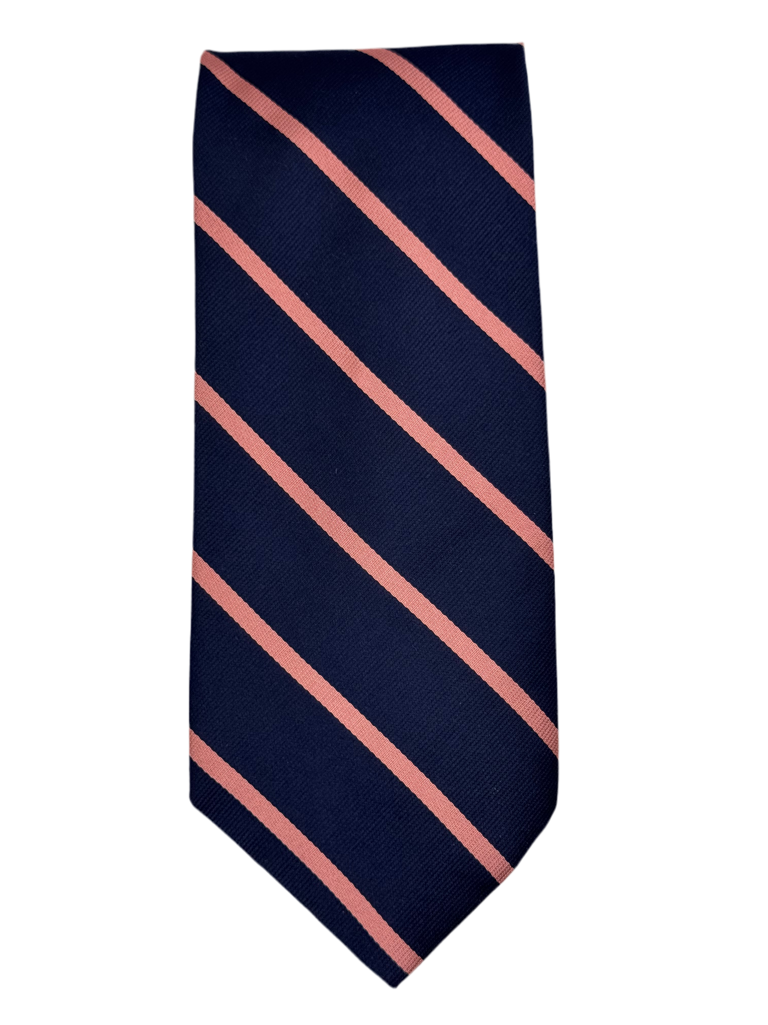 A perfect blend of tradition and modern flair, this Brooks Brothers tie features a bold diagonal stripe design in soft pink against a deep navy backdrop. Made from pure silk, it delivers the smooth texture and refined drape that Brooks Brothers is known for. The color combination gives a classic pattern a fresh, stylish update — equally sharp for boardroom meetings or wedding celebrations.