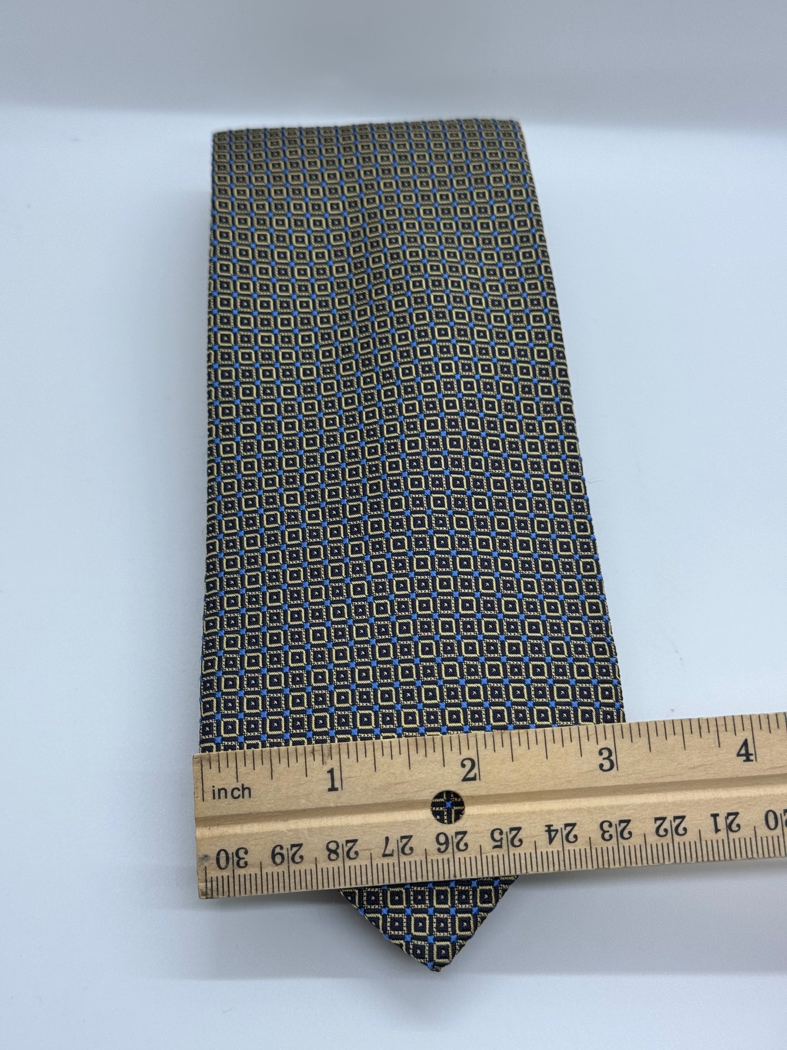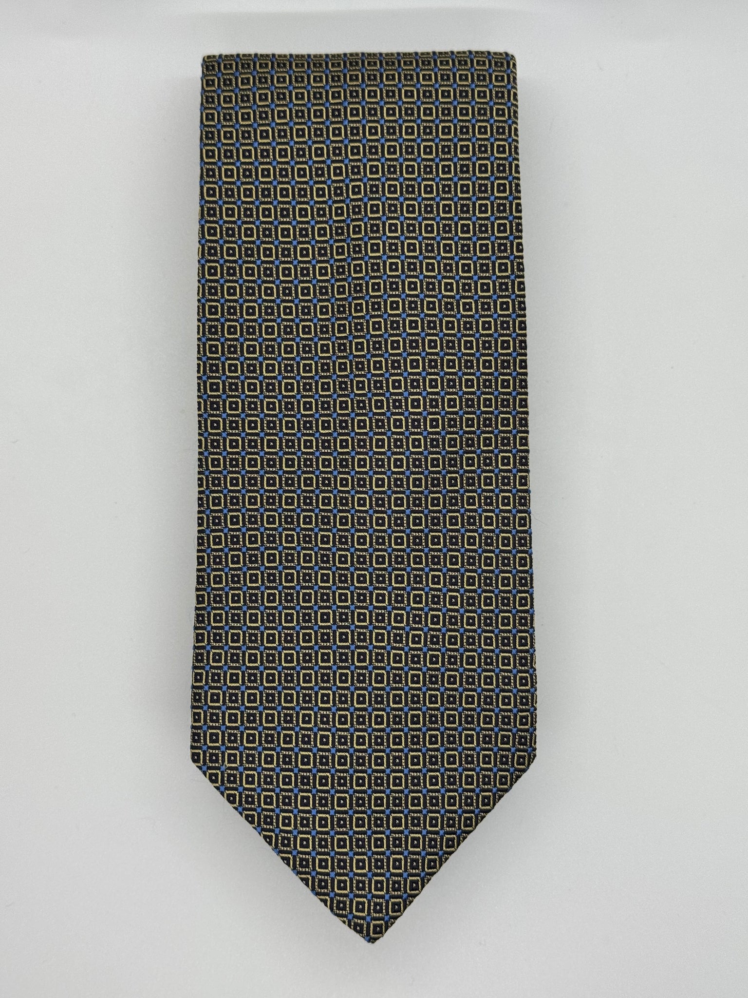 - Color: Navy with gold geometric square pattern